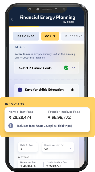 Once a goal is selected, the tool automatically analyzes it on various parameters such as the future value of the goal, tenure available, inflation rate, life expectancy, and more. With this detailed goal analysis and data, advisors are empowered to provide customized solutions to help their clients achieve their financial objectives.